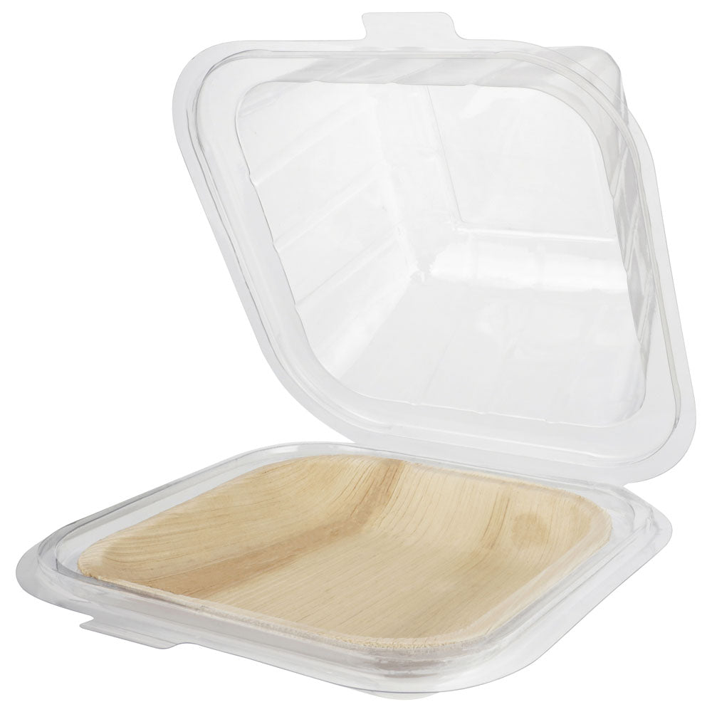 The Verterra 6" Square Rim-Lock Clamshell To-Go is a smart, sustainable solution for packaging small entrées, sides, desserts, or single-serving meals. Designed to fit Verterra’s 6" palm plate (sold separately), this eco-friendly to-go container features a patent-pending Rim-Lock system that snaps securely in place—providing leak-resistant, mess-free transport for food businesses prioritizing sustainability and style.